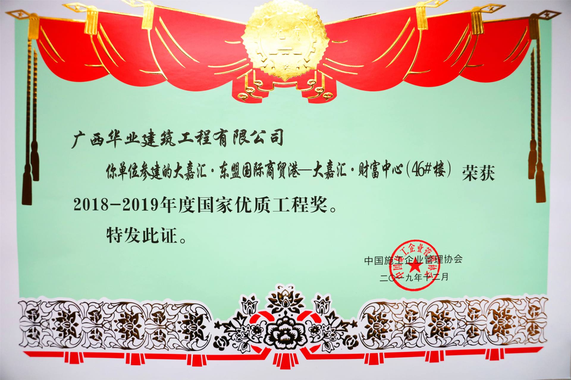 項(xiàng)目榮譽(yù):2019年全區(qū)建筑施工安全標(biāo)準(zhǔn)化觀(guān)摩項(xiàng)目 -